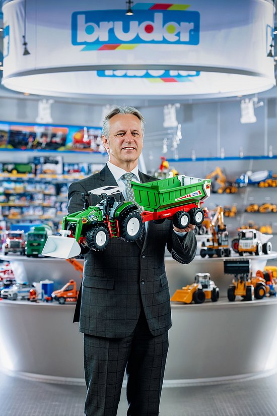 Zur Förderung dieser Prämisse werden BRUDER-Produkte als „modellmäßiges Spielzeug“ entwickelt. Modellmäßig, um das Rollenspiel beim Nachahmen der realen Umwelt anzuregen; funktionell, um die technischen Zusammenhänge durch „Greifen zu begreifen“.